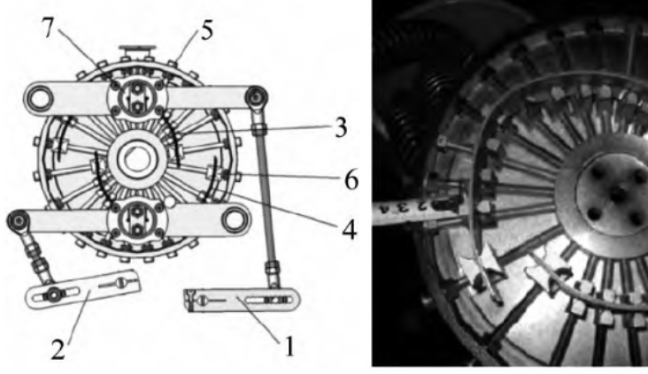 1—一次风杠杆;2—二次风杠杆;3—上曲线条;4—下曲线条;5—调节螺栓;6—滑块;7—转盘