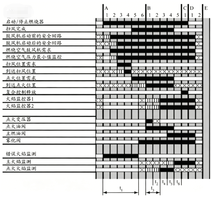 3.优化点火时序参数:通过程序控制器se@vis FSC(人机交互单元HMI操作),检查并调整点火时序参数,重点将二级点火安全时间t5(3s→5s)、主火焰稳定时间t6(1s→2s)延长,利于死油区燃油燃烧和火焰稳定(参数调整需登录2级权限,注意部分参数单位为0.1s)。
