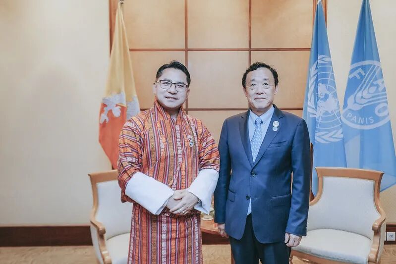 屈总干事会见不丹农业与畜牧业大臣。©粮农组织