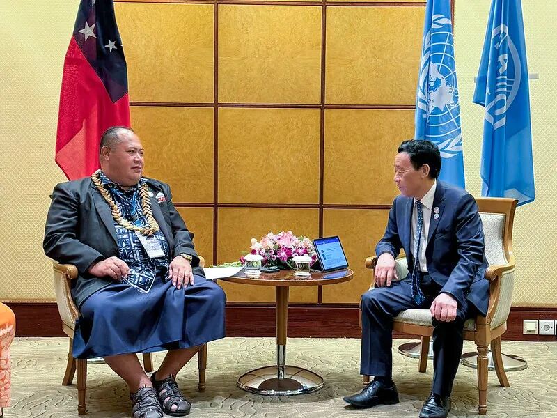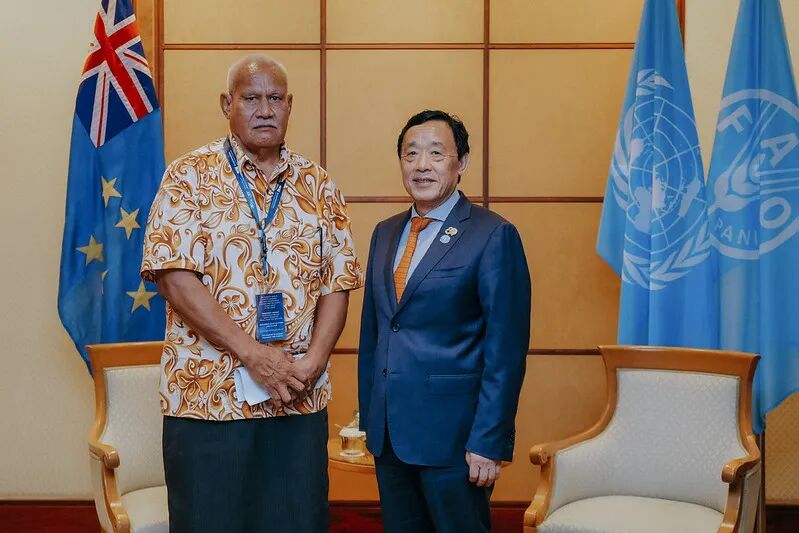 屈总干事会见图瓦卢自然资源部长。©粮农组织