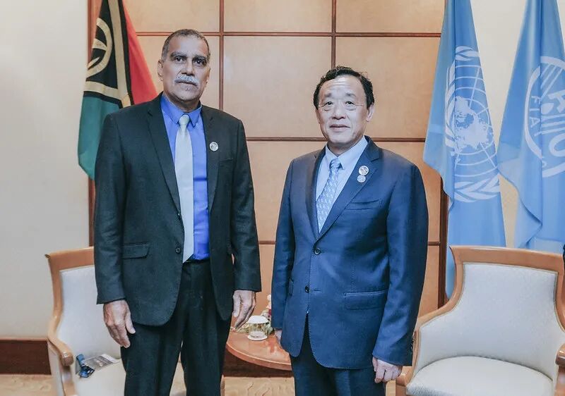 屈总干事会见瓦努阿图农林牧渔及生物安全部长。©粮农组织