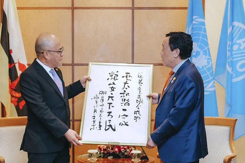 会议期间,屈总干事与文莱苏丹哈桑纳尔举行会晤。哈桑纳尔对屈总干事到访表示热烈欢迎,高度评价粮农组织同文莱长期保持的友好合作关系,重申愿进一步深化协作,共同推进文莱及亚太区域农业粮食体系可持续转型与粮食安全保障。哈桑纳尔强调,在推动可持续发展进程中,应注重传承和保护传统文化价值,维护社会和谐稳定,在此基础上拓展互利合作,促进包容发展,持续提升人民福祉和生活质量。