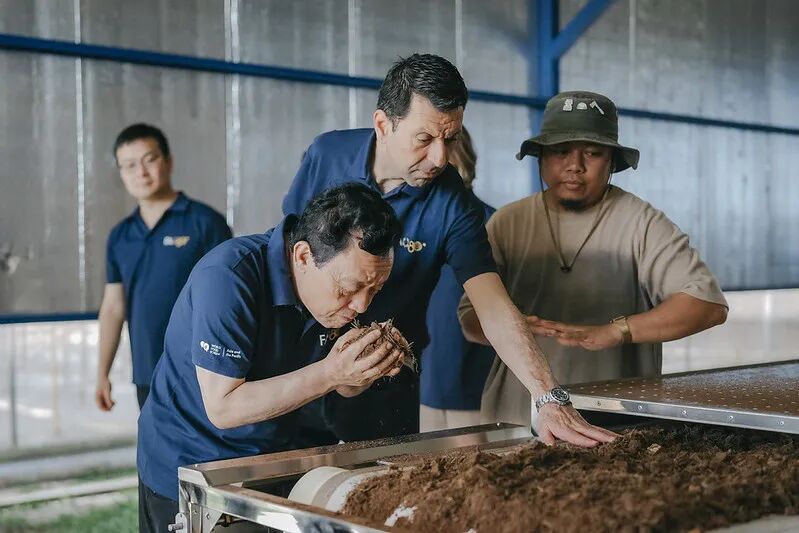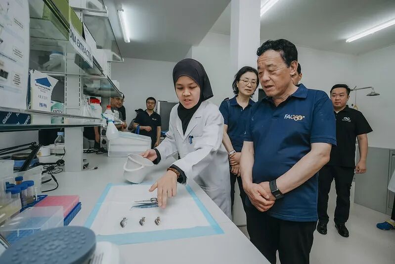 此外,在文莱政府高级官员陪同下,屈总干事一行利用会议间隙深入一线调研,重点考察当地设施农业大棚种植创新实践以及金目鲈(Barramundi)可持续养殖发展情况。屈总干事上手查看大棚果蔬土壤基质墒情,深入了解鱼苗养殖中的疫病防控和环境保护情况,强调应坚持科技赋能与人才培育相结合,持续激发农业发展内生动力,让青年成为农业现代化建设的生力军,同时着力推动全链条提质增效,促进种植业、水产养殖业向更高质量、更可持续发展方向迈进。