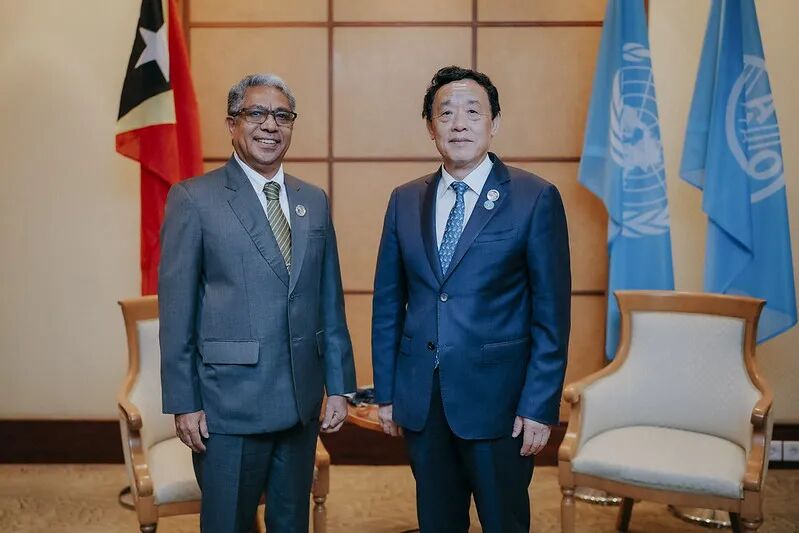 屈总干事会见东帝汶农林牧渔业部长。©粮农组织