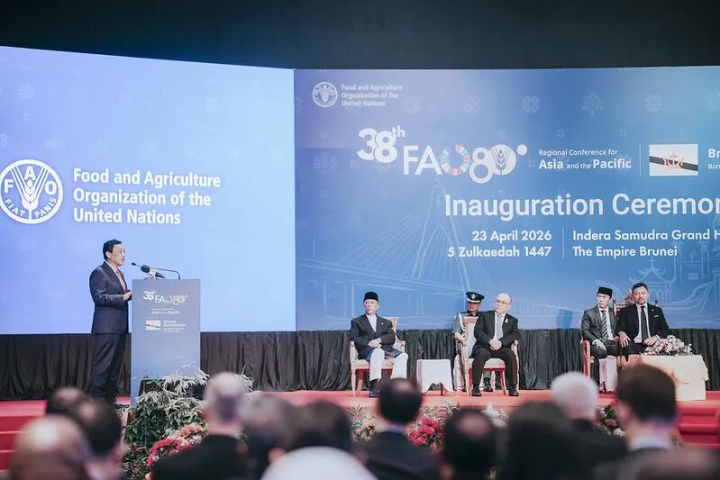 2026年4月22-24日,斯里巴加湾市 — 联合国粮食及农业组织(粮农组织)亚洲及太平洋区域第三十八届部长级会议在文莱首都斯里巴加湾市隆重举行。粮农组织总干事屈冬玉率总部高级别代表团于4月22日抵达文莱,出席区域部长级会议及相关高级别活动,呼吁亚太区域各成员国彰显亚太精神,以系统战略和务实行动固本强基保粮安、团结奋进促振兴。与会各方围绕农业粮食体系转型等重大议题深入研讨,系统研判发展瓶颈,统筹谋划破局路径。