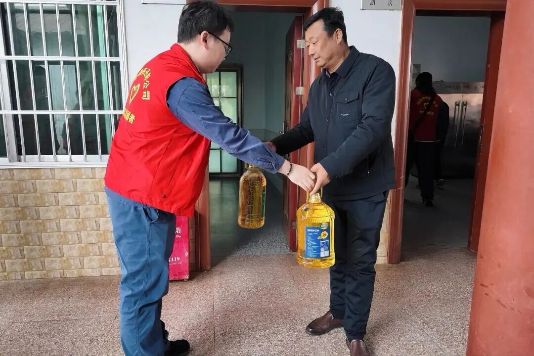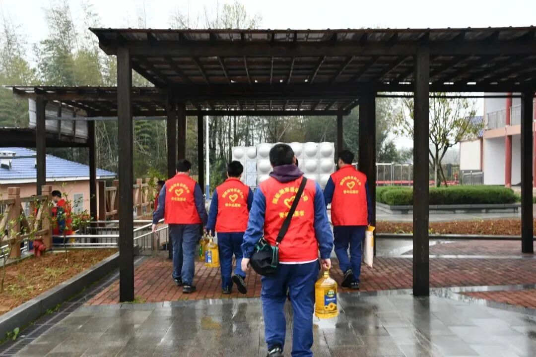 细雨初歇,绿意盎然。岳阳公司青年志愿者们身着统一的红色志愿马甲,精神抖擞地集结出发。他们手提满载心意的大米、食用油等慰问品,前往东山镇荷叶敬老院开展志愿服务活动。
