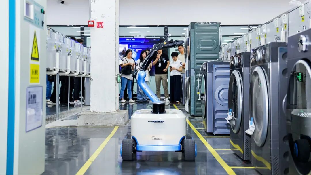 美的AI研究院研制的AI巡检机器人“玉兔”在工厂工作