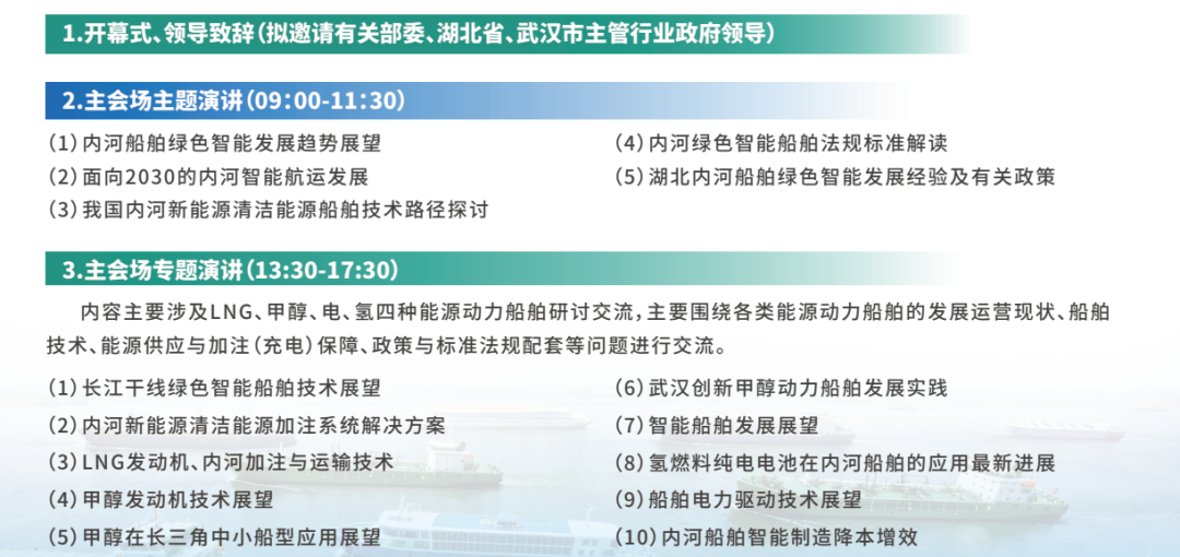 会议围绕加快内河船舶绿色智能化,宣讲解读国家政策法规、总结交流试点示范及实践经验、推广先进技术和装备、研讨标准规范的完善、探讨降低投资成本提高效益的途径等。