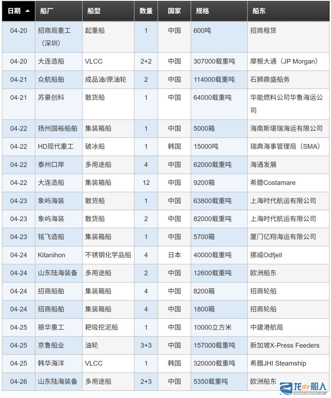 船厂订单汇总(4.20-4.26):上周49+8艘