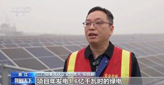 三门县某光伏企业负责人 吴晓鹏:项目年发电1.6亿千瓦时的绿电,相当于能为8.5万户居民提供一年的用电量,每年大概产生8200多万元的经济效益。