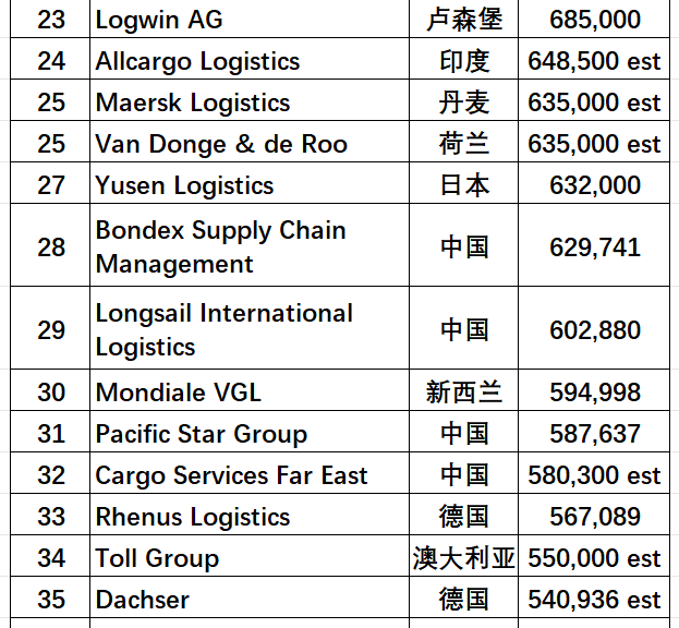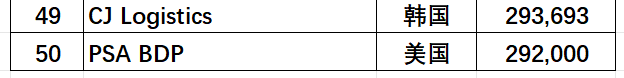 - 东方海外物流(OOCL Logistics)排名第19位,货量84.0万TEU;