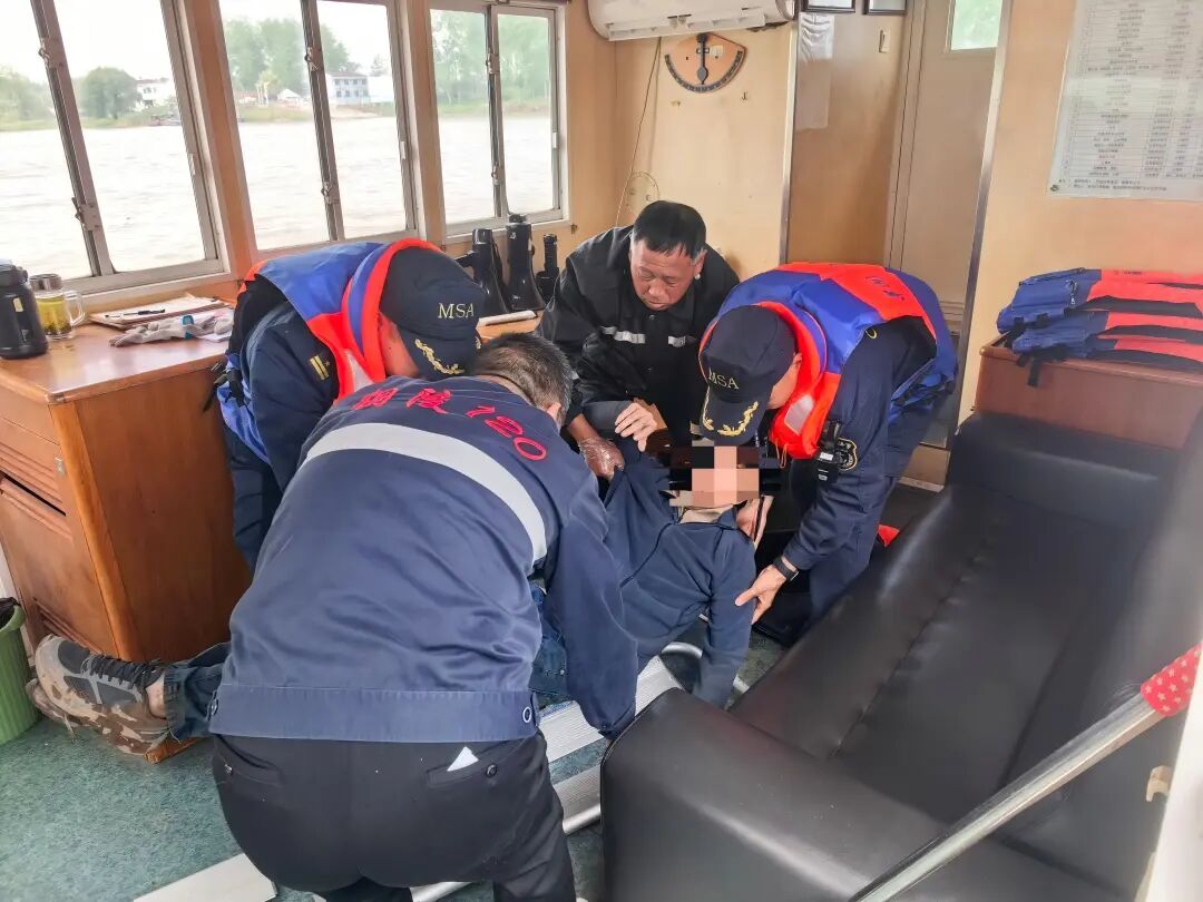 海事执法人员立即将落水者安全转移至海巡艇上。考虑到江水冰凉、落水者体温偏低,海事执法人员迅速打开艇内空调为其取暖,同时不断与落水者说话,反复提醒其保持意识清醒。