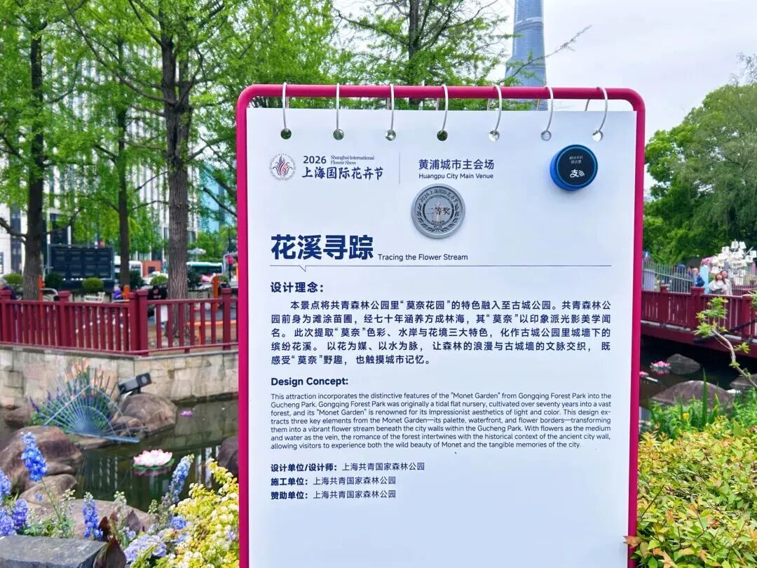 “花溪寻踪”正是这场“城市记忆”叙事中的点睛之笔。以花为媒,以水为脉,这里不仅是景观的延展,更是一场从森林到城厢的对话。穿行其间,左手是六百多年前为抵御倭寇筑起的明代城墙,右手是印象派光影下摇曳生姿的繁花溪流——既能感受草木芬芳的自然野趣,也能触摸岁月沉淀的城市记忆。抬头是陆家嘴摩天大楼勾勒的现代天际线,低头是斑驳的城墙砖石,新旧景观在花影掩映间完成了一场默契对话。