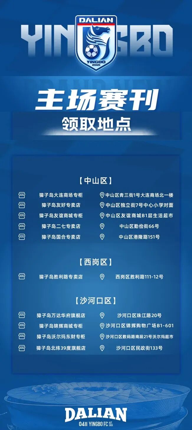 即日起至4月30日,凡在大连地区的獐子岛品牌、北纬39°品牌直营门店以及抖音平台“獐子岛官方旗舰店”单笔消费满3000元,即可获赠5月1日英博海发队主场球票一张!数量有限,先到先得,赠完即止。
