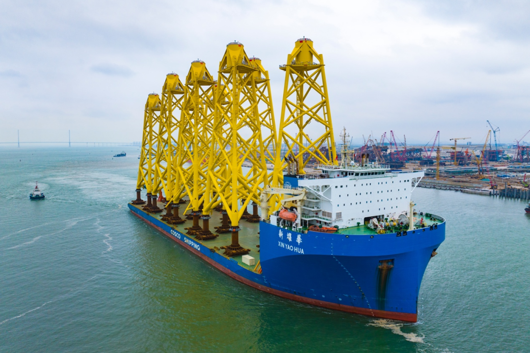 多元绿色转型,成效显著提升。浙江海风万吨级换流站项目稳步实施,全球单机容量最大开阔海域张力腿浮式风电平台进入全面调试阶段;柬埔寨LNG项目顺利完成储罐气顶升里程碑节点,充分展现清洁能源领域卓越的国际化运营与项目综合管理水平;英奇角欧洲海上风电项目18套导管架、24套单桩过渡段顺利交付,这是我国为欧洲市场交付的单机容量最大的海上风电导管架,标志着我国海上风电类产品核心建造能力获得重要突破。