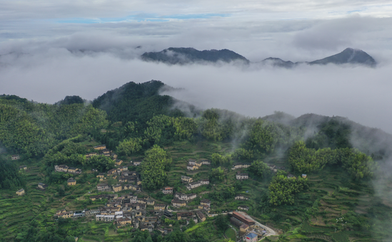 清晨,雾气笼罩下的四都乡陈家铺村。新华网发 松阳县宣传部供图