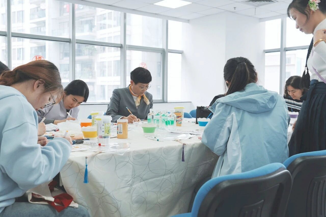 各特色区域内暖意涌动,处处洋溢着欢声笑语。在非遗手作体验区,员工们动手绘制图案,剪出福字、窗花、马形等喜庆图案;在潮玩DIY区,员工们的艺术创作创意得到充分发挥,用手中的画笔绘制了马年元素和各式国风纹样的团扇;在趣味游戏区,“VR游戏千机变”借助虚拟现实技术,开启奇幻游乐之旅,让员工们沉浸式体验科技带来的欢乐。随后,“马到功成·舞新年”集体舞环节将活动推向高潮,员工们在音乐中共同舞动、喜迎新春,充分诠释了“同心创未来”的活动主题。活动最后在欢声笑语中圆满落幕,为2026年新春佳节注入了满满的祝福。