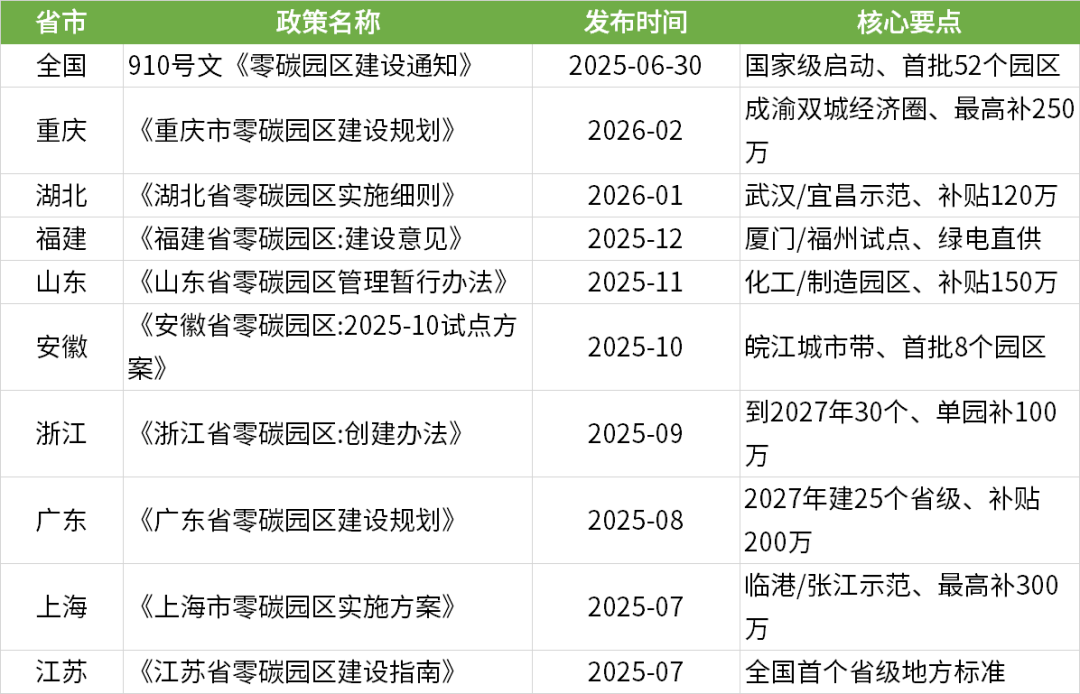 全国零碳工厂/零碳园区政策全景(已发布+计划中)