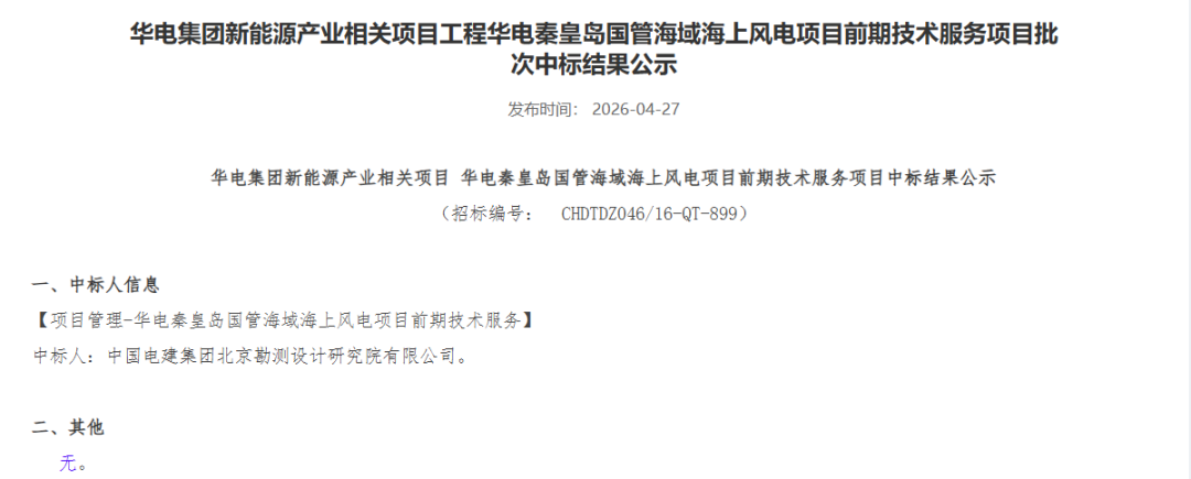 中标结果定了!华电河北100万千瓦海上风电项目