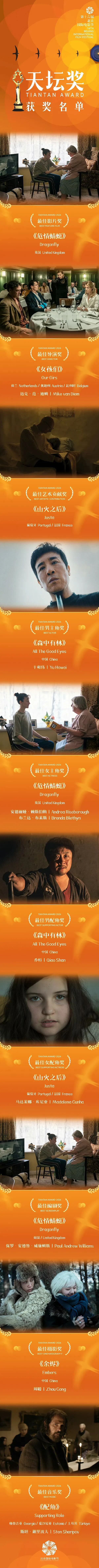 4月25日,第十六届北京国际电影节闭幕式暨颁奖典礼在雁栖湖国际会展中心举行,本届“天坛奖”十大奖项逐一颁出。本届“天坛奖”共有16部入围影片,从139个国家和地区的1826部影片中层层筛选而出,其中包括4部国产电影。
