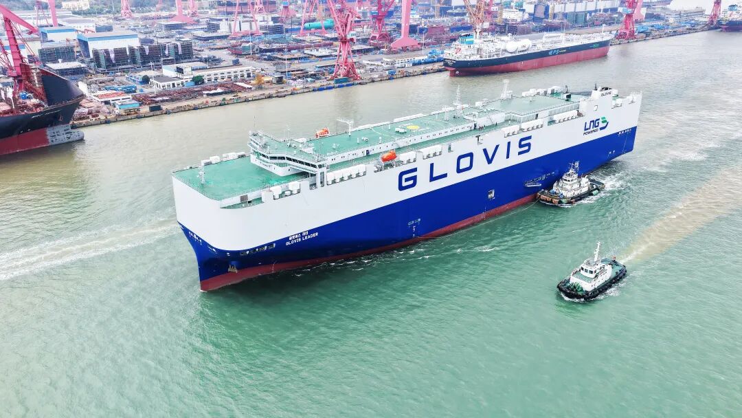 4月28日,中国船舶集团有限公司旗下上海船舶研究设计院研发设计、广船国际有限公司联合中国船舶工业贸易有限公司为韩国HMM航运建造的全球首艘10800车汽车运输船(PCTC)“格罗唯视 领航(GLOVIS LEADER)”号在广州南沙命名交付。该船单船最大装车量达10800辆,刷新全球同类船舶运力纪录,标志着我国高端船舶制造能力实现新突破,为全球航运业绿色低碳转型提供了“中国方案”。