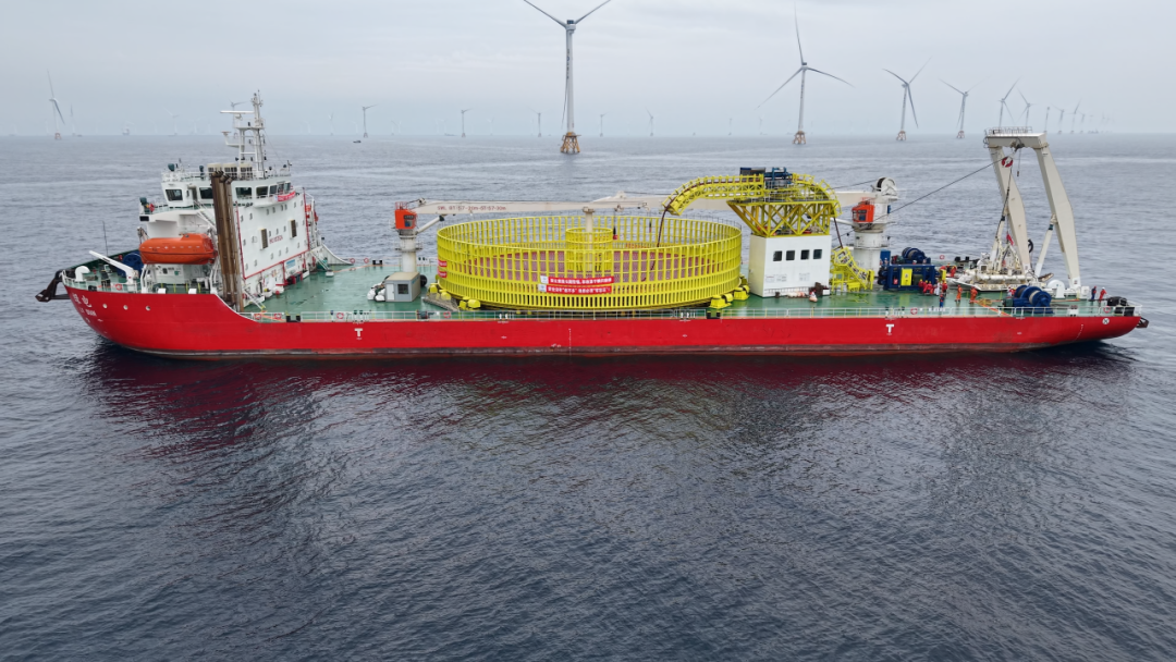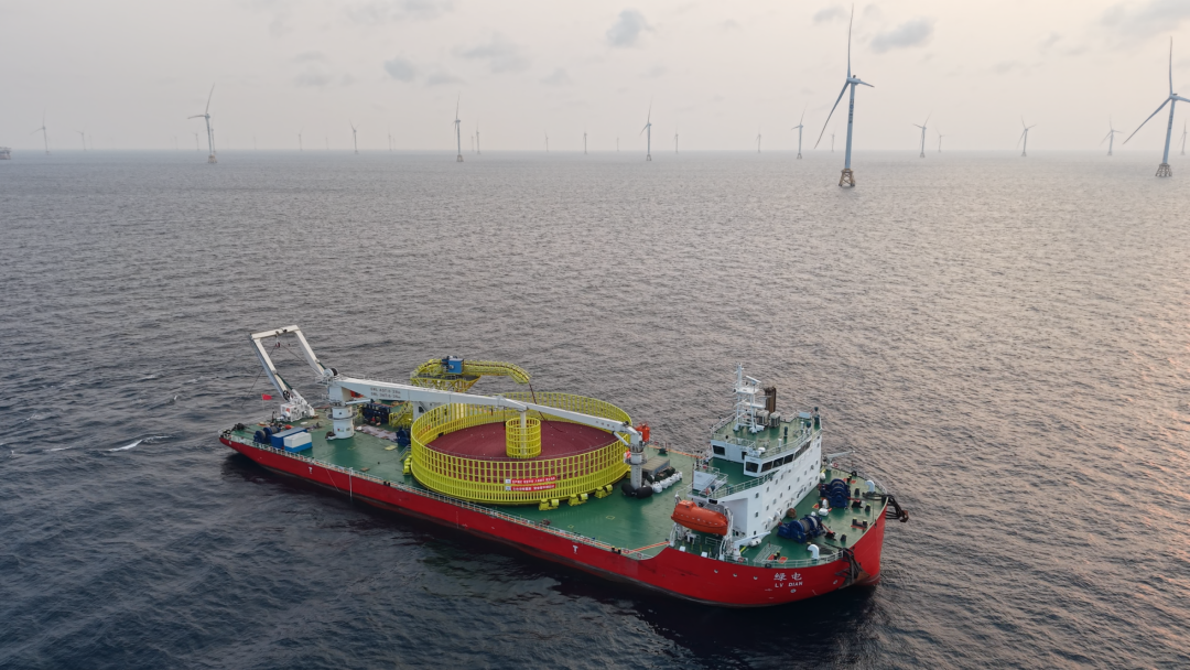 据悉,“绿电”轮总长120米、型宽40米、型深9米,净载缆量达12000吨,入级中国船级社(CCS),具备无限航区作业能力;采用全电力推进系统,能够在复杂海况下保持高精度定位,确保作业稳定性;其核心布缆装备完全实现国产化,缆盘直径达38米,单台泵铺设速度超过10米/分钟。该船专为三峡阳江青洲五、青洲七海上风电场海缆集中送出工程等国家重点工程项目“量身定制”。