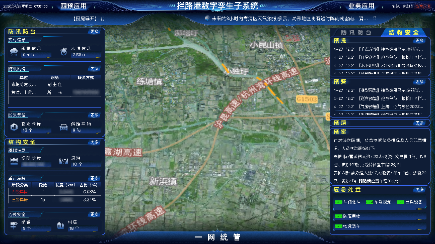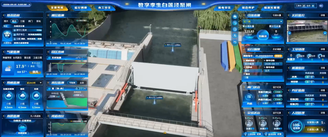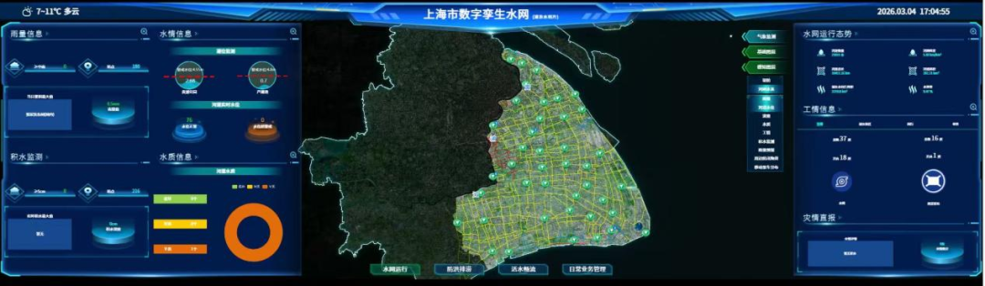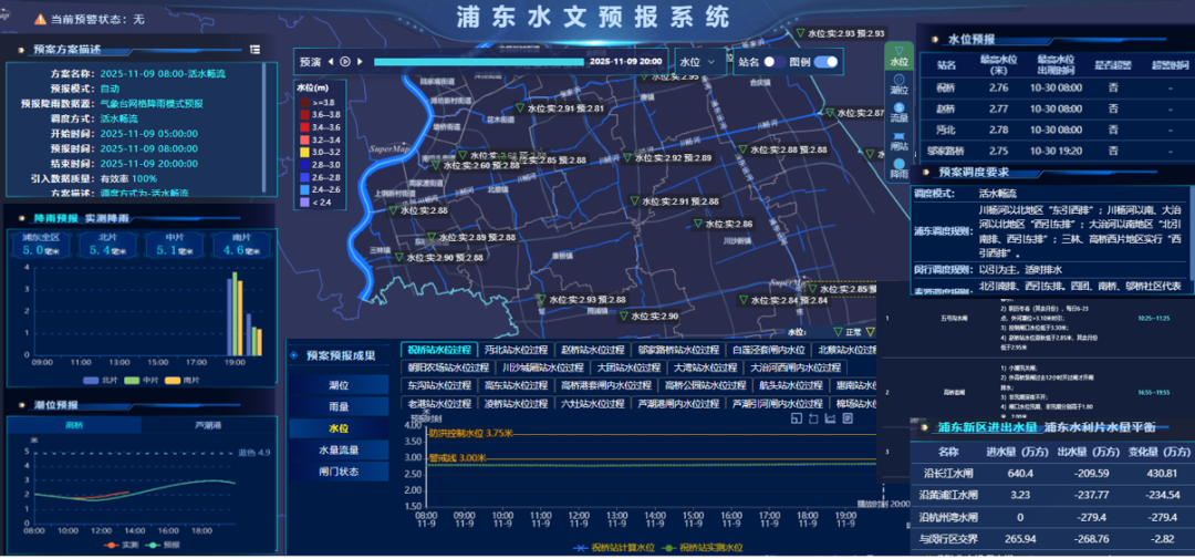 项目覆盖上海14个水利片中面积最大的浦东水利控制片,涉及2219.8平方公里、159条河道,打造了“1+2+4”总体框架:一个全要素数字孪生底板、两套100%自主研发的水力计算模型、四个业务应用场景。