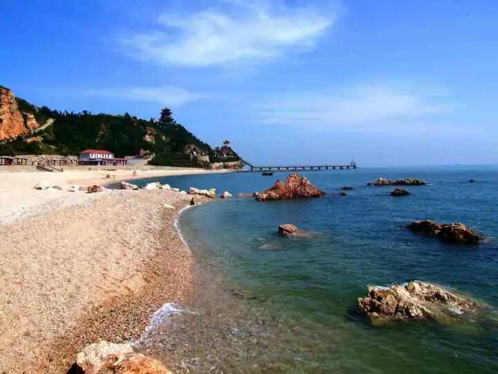 月牙湾因形似一弯新月得名,这里拥有长岛独有的天然球石滩,圆润光滑的球石遍布沙滩,踩上去触感独特。沙滩背靠青山,面朝大海,海水清澈湛蓝,是踏浪戏水、休闲漫步的好去处。春日的月牙湾,海风轻柔,可坐在球石上静听海浪,或是沿着海岸线漫步,感受海岛的静谧与浪漫,也是亲子游玩、拍照打卡的优选之地。