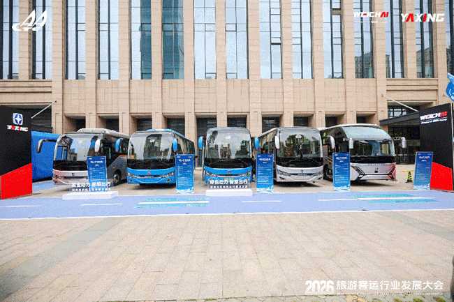 同时展出全场景旅团车型,覆盖高端旅游、团体客运、商务接待全领域,布局燃油、纯电双能源解决方案。燃油车型全系搭载潍柴高效动力,纯电阵营依托潍柴三电核心技术,超低电耗、高安全长寿命,为行业绿色转型筑牢装备支撑。