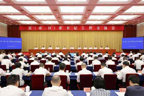 10月16日上午,省委召开县(市、区)委书记工作交流会。省委书记王浩出席会议并讲话。潮新闻记者 李震宇 摄16日上午,省委召开县(市、区)委书记工作交流会。省委书记王浩在会上强调,四季度是冲锋冲刺、决战决胜的攻坚季。要深入贯彻落实习近平总书记重要指示批示精神和考察浙江重要讲话精神,坚定扛起“经济大省挑大梁”的责任担当,牢牢扭住高质量发展建设共同富裕示范区这一核心任务,大力弘扬“六干”作风,扎实推进