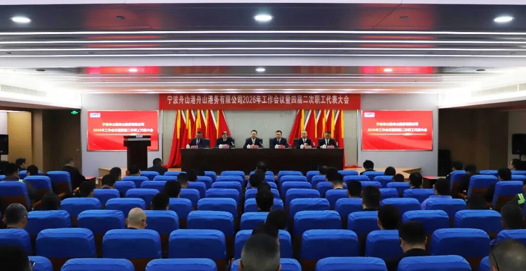 3月26日上午,公司2026年工作会议暨四届二次职工代表大会在舟山港务大厦胜利召开。会议全面贯彻落实党的二十大、二十届历次全会和全国两会精神,深入学习贯彻习近平总书记考察浙江和宁波舟山港重要讲话精神,全面落实省、市新春第一会部署要求,认真贯彻集团年度工作会议精神,回顾总结公司“十四五”及2025年工作,深刻把握面临的新形势和新要求,全面部署“十五五”及2026年重点工作任务,团结带领全体干部职工锚