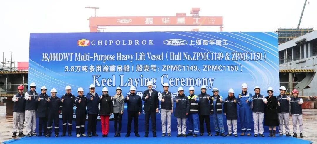 3月18日,公司为中波轮船股份公司建造的3号、4号两艘38000吨多用途重吊船铺龙骨仪式在振华海工顺利举行。继该系列1号、2号船开工建造后,目前3号、4号两船建造工作正按计划推进。此四艘同型重吊船,是公司深耕高端特种船舶建造领域的力作。船舶总长182米、型宽30米、型深17米,设计吃水9.8米,服务航速14.5节,入DNV船级社,配备3台由公司自主研发的350吨克令吊,双机联吊能力达700吨,可高