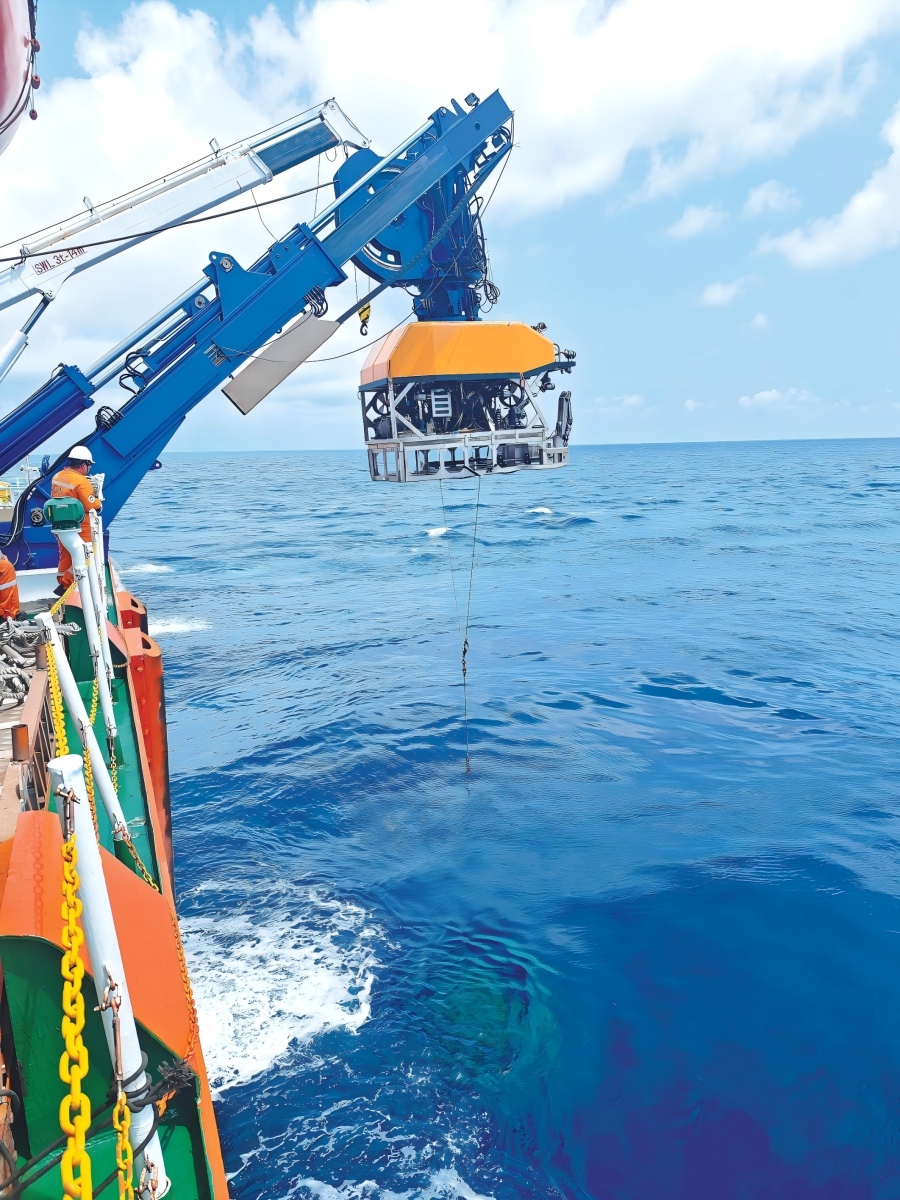 科考人员利用“海马”号无人遥控潜水器回收沉积物捕获器。广州海洋地质调查局供图 自然资源部中国地质调查局联合中国海洋大学、大连海事大学、上海交通大学、浙江大学、自然资源部第二海洋研究所等16家单位,组织100名科考人员搭乘“海洋地质二号”船,历时30天,于近日圆满完成第33航次深海科考任务。该航次创新多学科交叉海洋调查新模式,打造了科学与技术相融合的开放共享平台,一次出航高效完成四大类10余项科研任