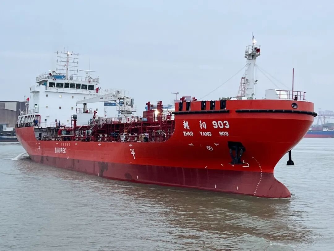 4月22日上午,实华南油订造的8000吨供油兼油品运输船“朝阳903”轮在江苏靖江举行命名暨交船仪式。重庆装备/川东造船党委书记、董事长徐猛,中船澄西副总经理姜道如,中石化燃料油业务和市场部处长余羽华,招商南油总轮机长奚玉生出席仪式并致辞。实华南油财务经理叶佳丽为新船命名并砍缆,祝愿“朝阳903”轮一帆风顺,安全高效,满载荣光!此次新船投入运营将为实华南油船燃配送和运输业务注入新动力,在助力建设保