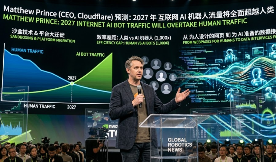 【奥斯汀讯】 在 2026 年 3 月举行的 SXSW(南南西)科技大会上,全球互联网基础设施巨头 Cloudflare 的首席执行官 Matthew Prince 投下了一枚重磅炸弹。他预测,到 2027 年,互联网上的 AI 机器人(Bots)流量将正式超过人类流量,这标志着互联网自诞生以来最深刻的平台转型。