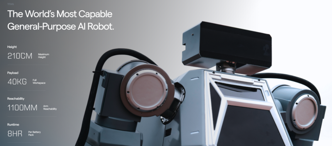 与市面上主打轻量化、聚焦服务场景的机器人不同,TITAN 从设计之初就瞄准工业领域高强度、高风险作业场景。双臂 40 公斤负载能力、1 毫米级操作精度,使其可在户外与室内复杂工业环境中稳定作业。高空光伏安装、数据中心重型设备搬运、港口货物装卸、矿山井下作业等人类不愿做、不敢做、效率低的工作,正是 TITAN 的核心应用场景。