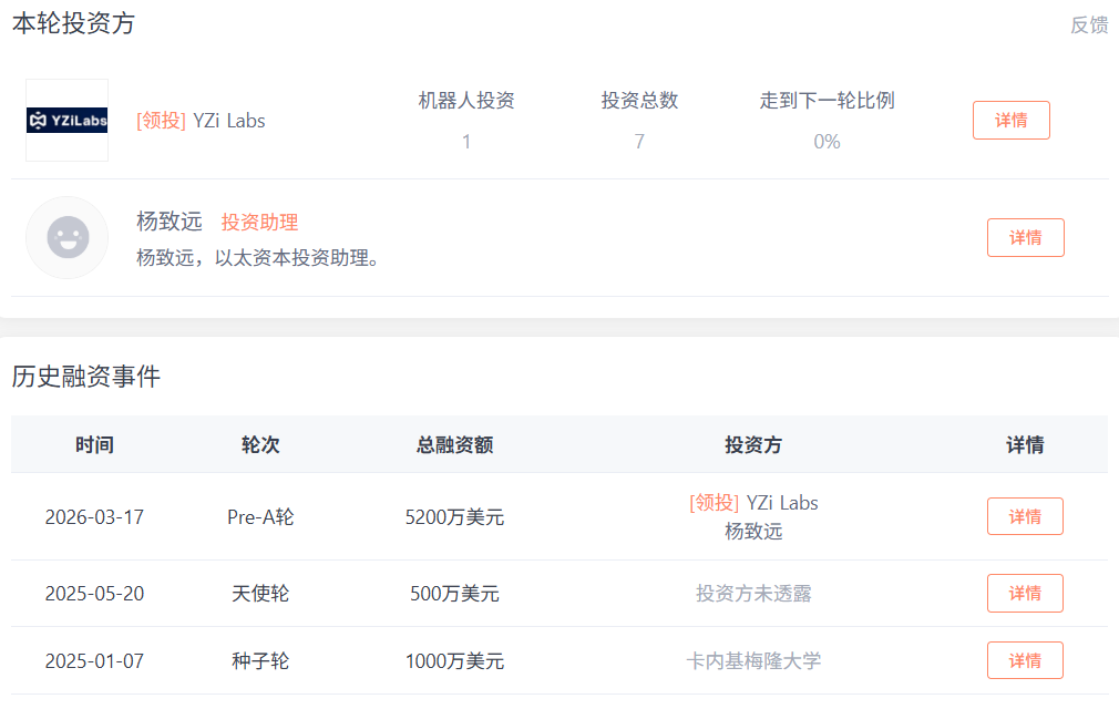 本轮融资由YZi Labs 领投,雅虎联合创始人、前 CEO 杨致远亲自参投。叠加此前已入局的诺贝尔经济学奖得主迈伦・斯科尔斯(Myron Scholes)、启明创投创始主管合伙人盖瑞・里斯切尔(Gary Rieschel),以及卡内基梅隆大学,这家成立仅三年的初创公司,一举汇聚了科技、投资、学术三大领域的顶尖力量。