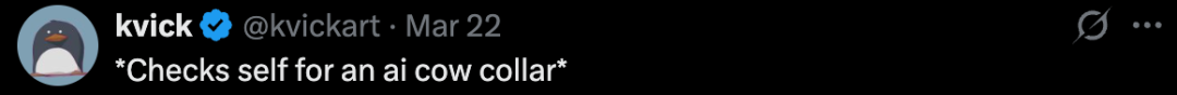 有人调侃,AI 时代连牛都被高科技管了,人类更跑不掉,可以把这些东西戴在前沿 AI 实验室的开发者身上。