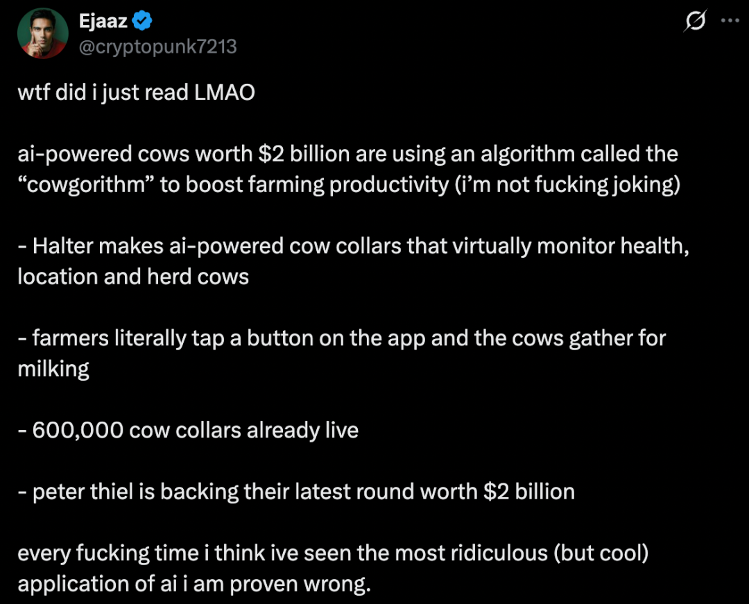 造火箭的辞职去放牛,彼得·蒂尔花20亿美元押注一个AI牛项圈
