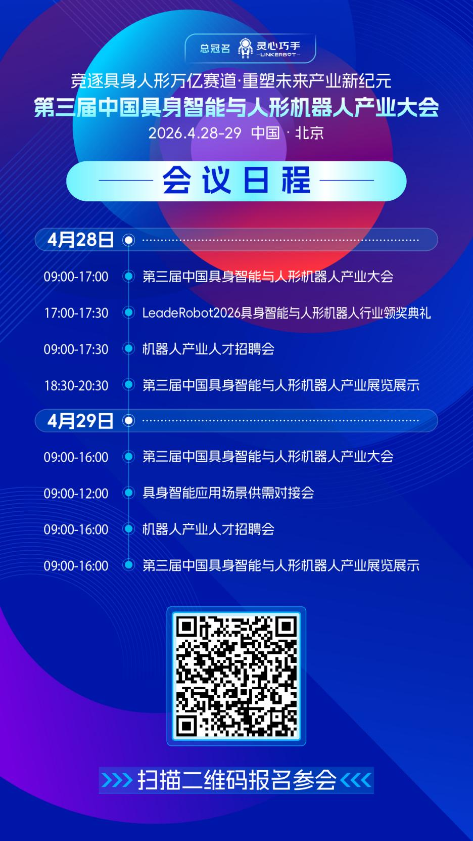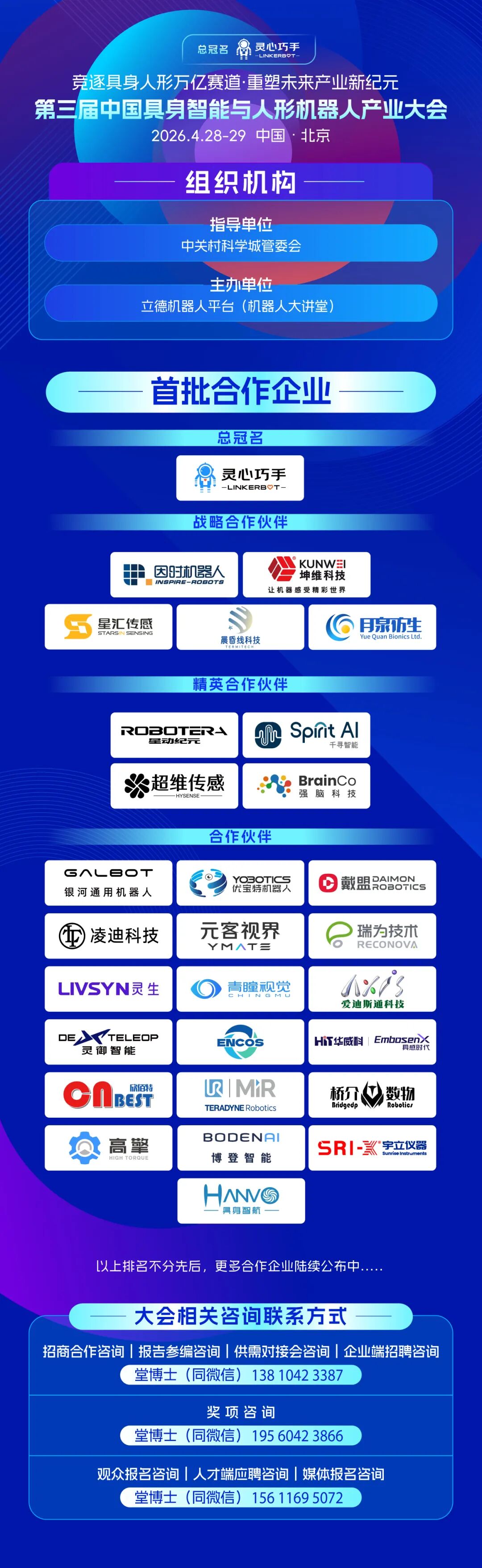 4月北京,年度具身智能与人形机器人产业顶级盛会,无论是登台发布重磅成果、现场参会对接资源,还是深度合作共建生态,这里都有产业机遇。限时席位火热锁定中,我们北京见!