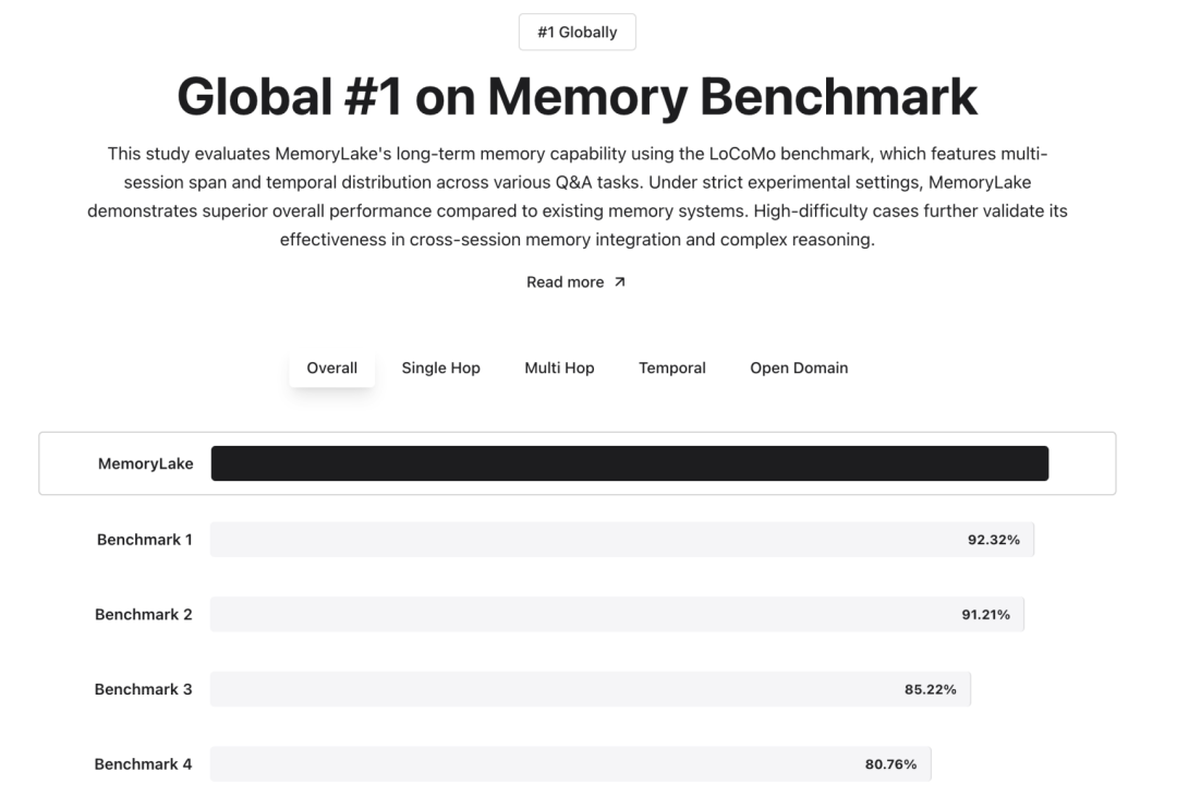 MemoryLake 的性能指标,为其生产级记忆基础设施能力提供了支撑: