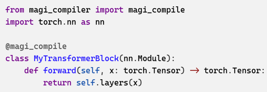 无需修改模型源码,magi_compile 一键装饰 TransformerBlock: