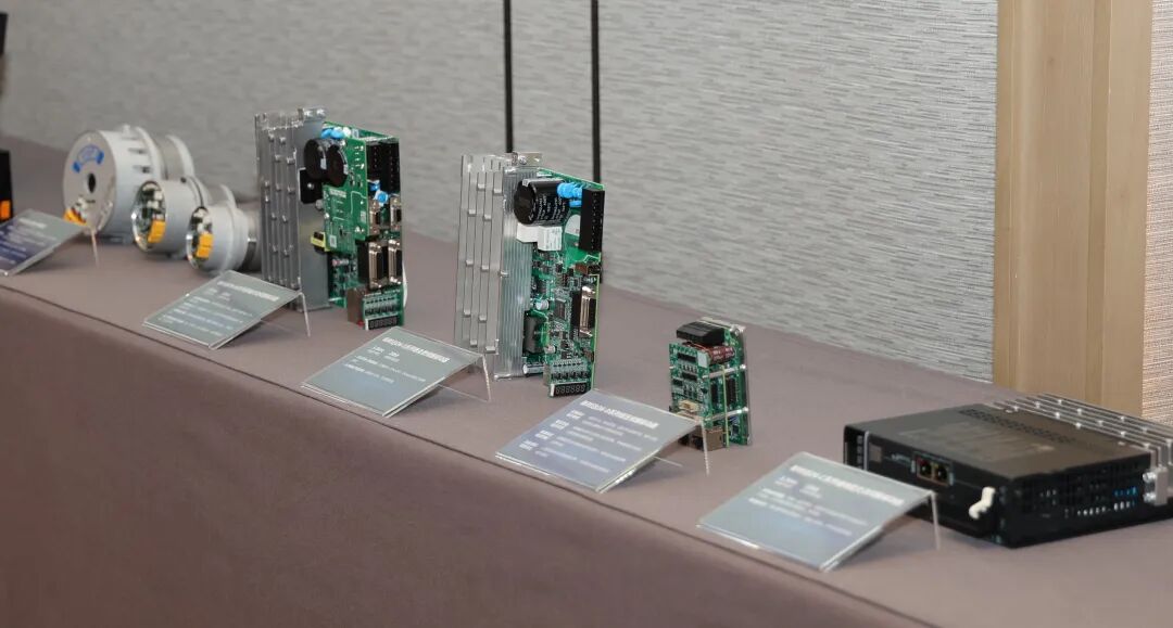 活动现场,搭载了匠芯创M7000系列DSP的新时达Ω系列伺服驱动器、人形机器人关节模组及多款行业解决方案集中展示。该组合不仅是硬件层面的集成应用,更通过芯片底层架构与运动控制算法的协同优化,实现了从“应用适配”走向“性能定义”的升级。这一创新为半导体关键装备(如贴片机、分选机、固晶机等)提供了更加精准、稳定的控制能力,同时也为AI边缘计算与智能装备的进一步融合预留了扩展空间。