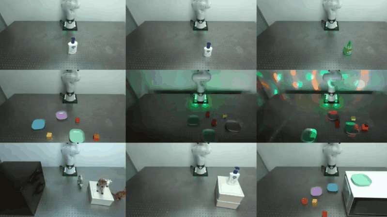 在真实的工业落地中,这种架构创新转化为了一种强悍的实战能力:面对全新的任务,FAM 模型在极限情况下仅需 3 到 5 条真机演示数据,即可完成高可靠性的部署,基础任务成功率近 97%。