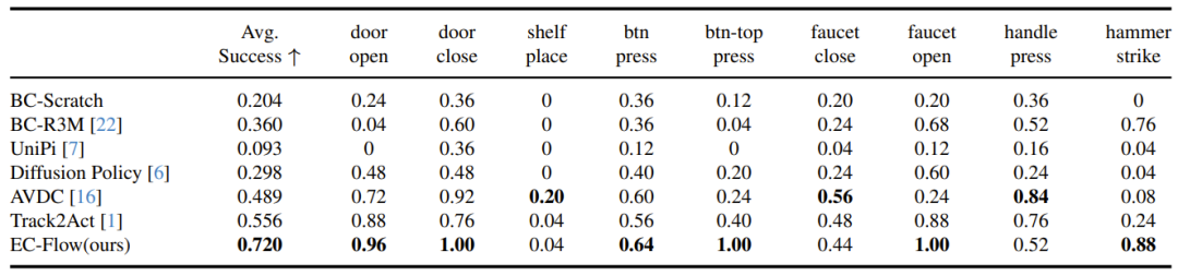 Meta-World 基准测试上的模拟结果。