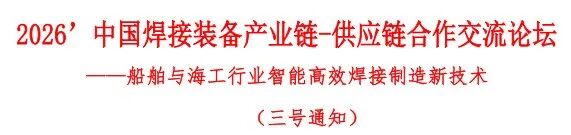 2026’中国焊接装备产业链-供应链合作交流论坛 ——船舶与海工行业智能高效焊接制造新技术 (三号通知)