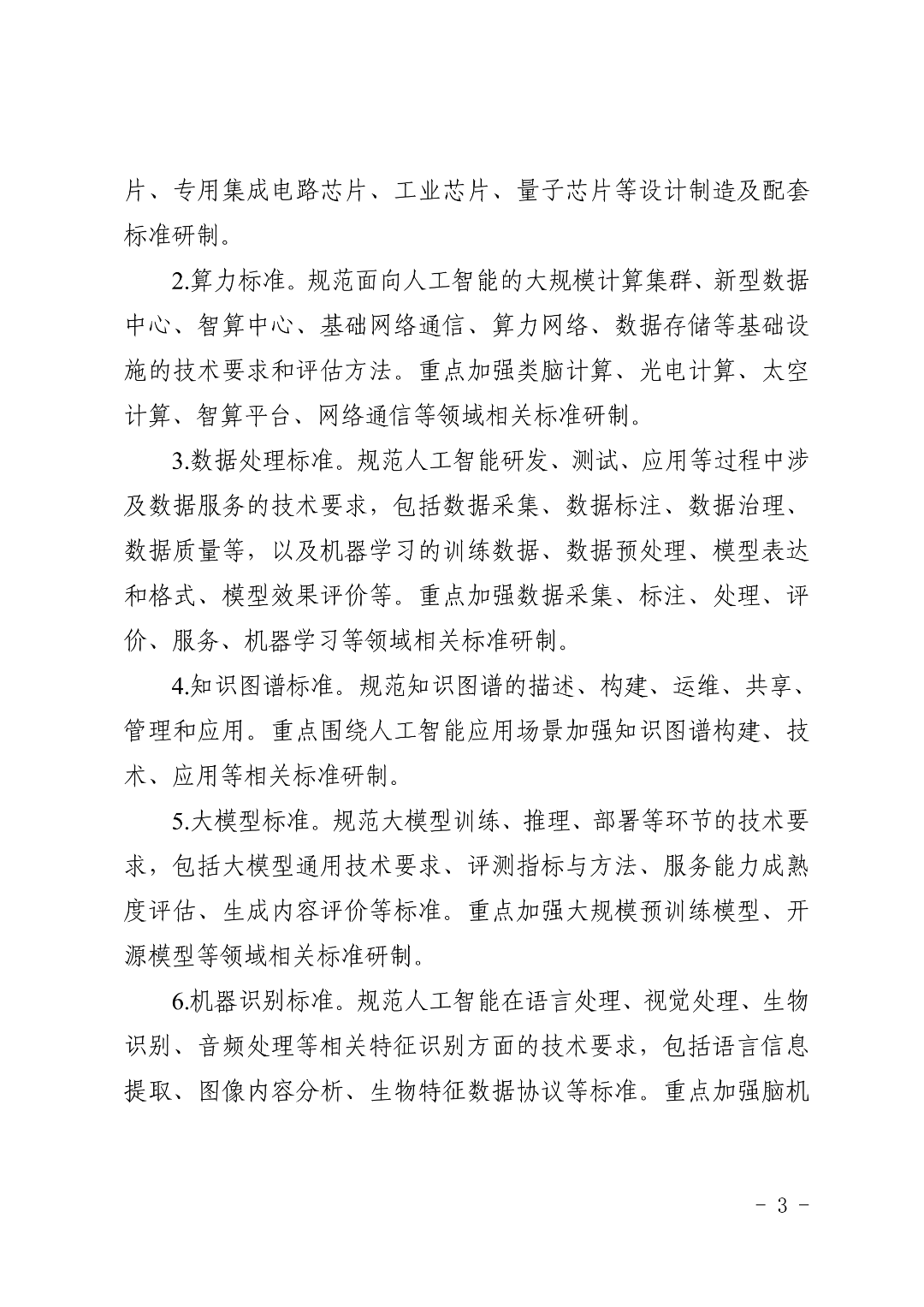 攻坚AI核心技术,覆盖智能芯片、算力算法、数据处理、大模型、机器识别、智能体等关键领域,重点布局类脑计算、大模型训练推理、脑机接口、多模态智能体等前沿技术标准化。