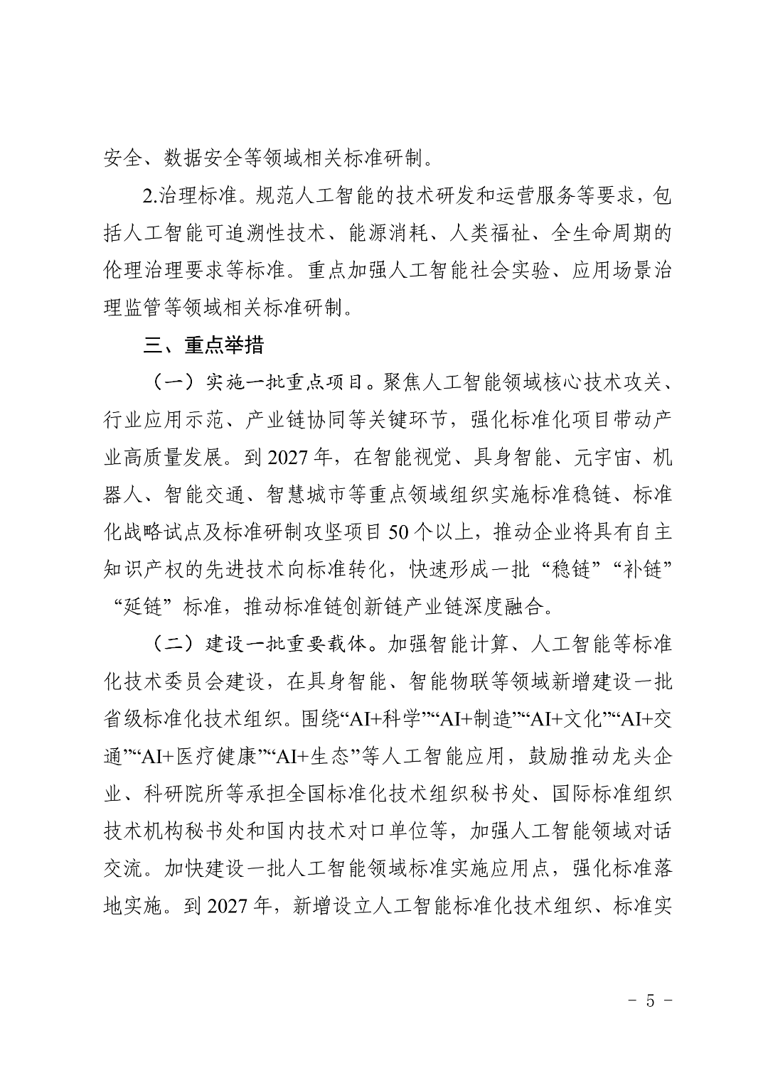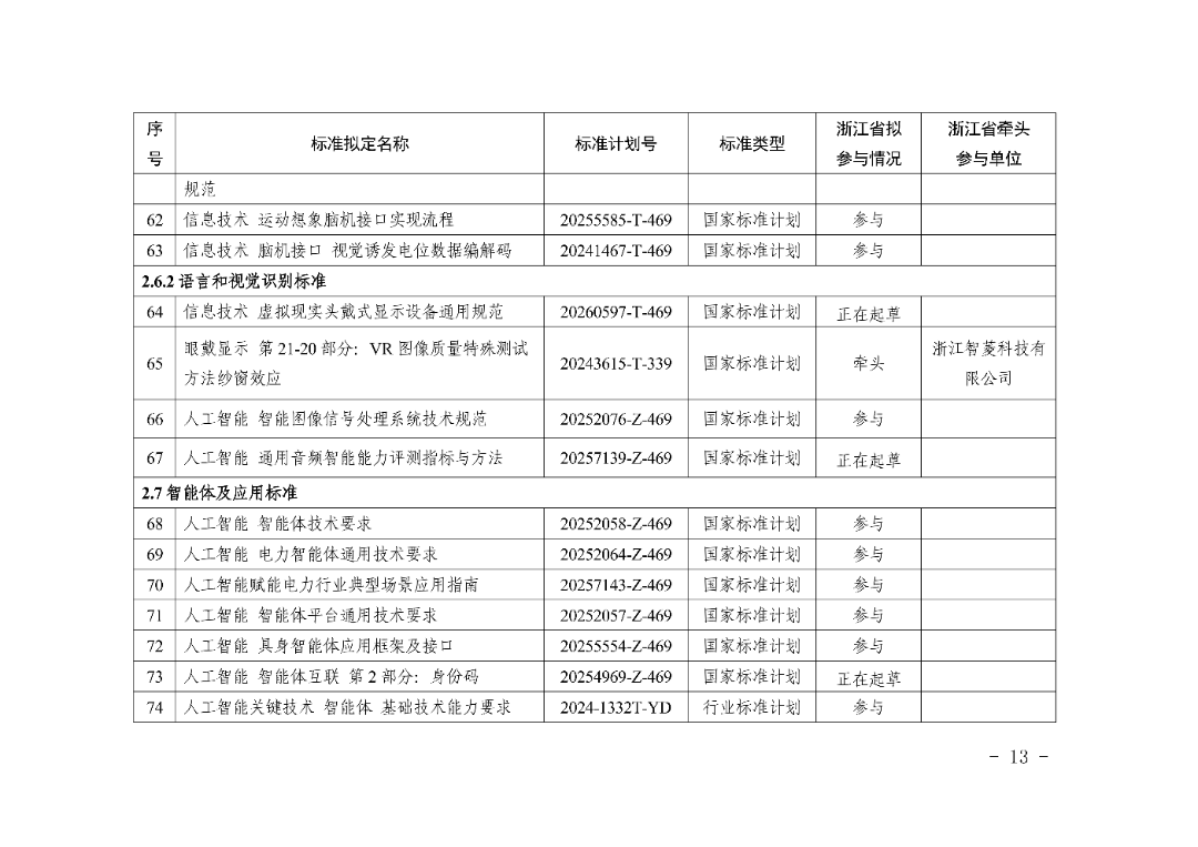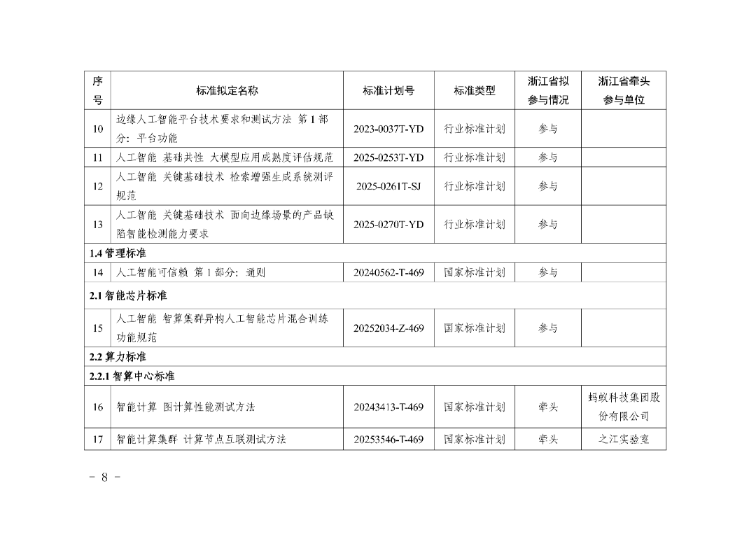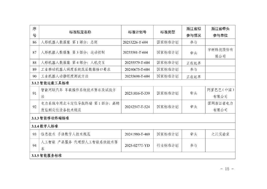 加强智能计算、人工智能等标准化技术委员会建设,在具身智能、智能物联等领域新增建设一批省级标准化技术组织。