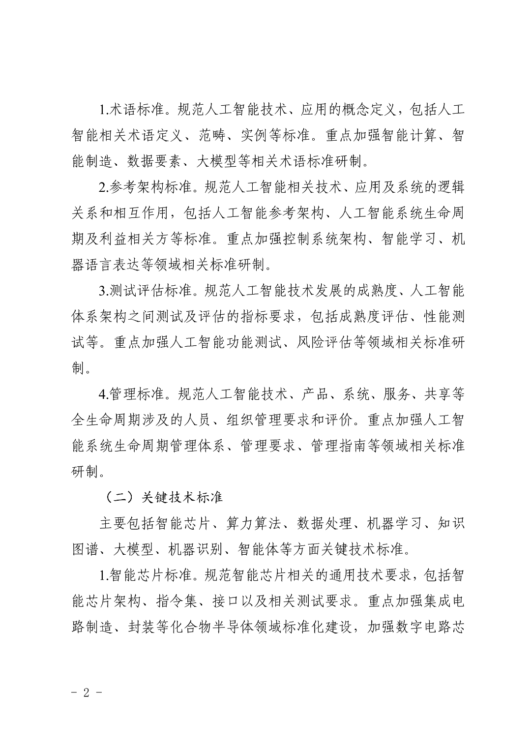 夯实AI发展根基,聚焦术语、参考架构、测试评估、管理四大方向,重点研制智能计算、大模型、功能测试、生命周期管理等领域标准,规范AI技术与应用的基础定义和通用要求。