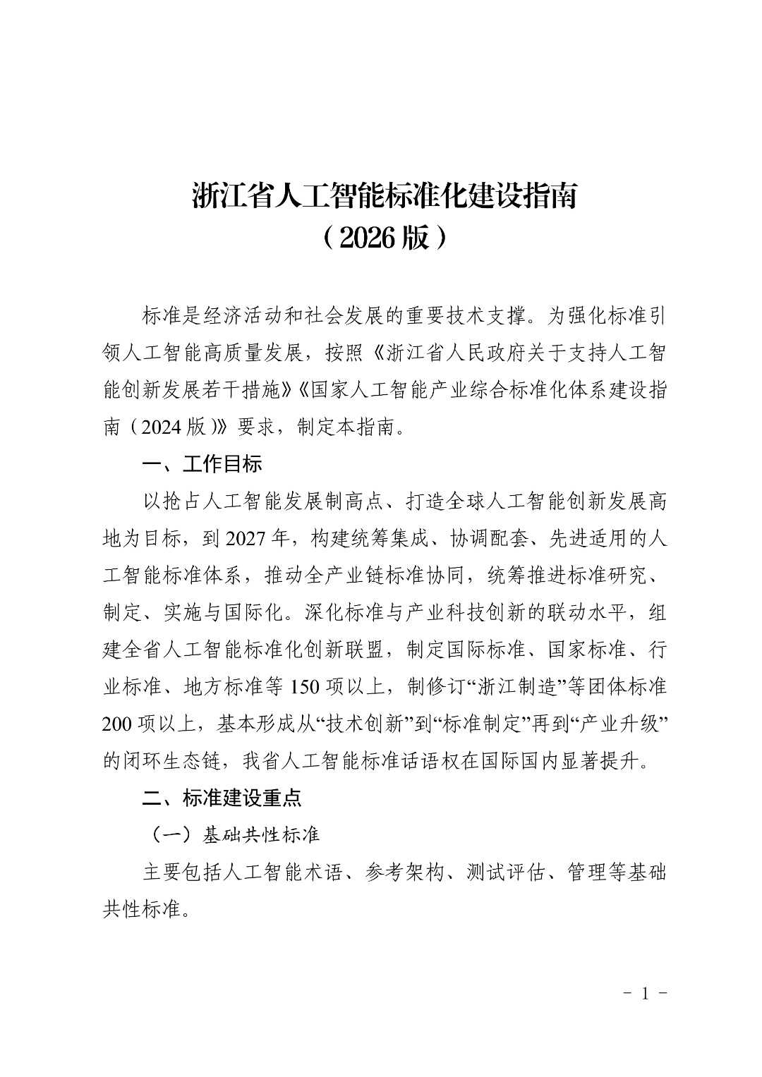 【产业政策】浙江省印发《人工智能标准化建设指南(2026版)》